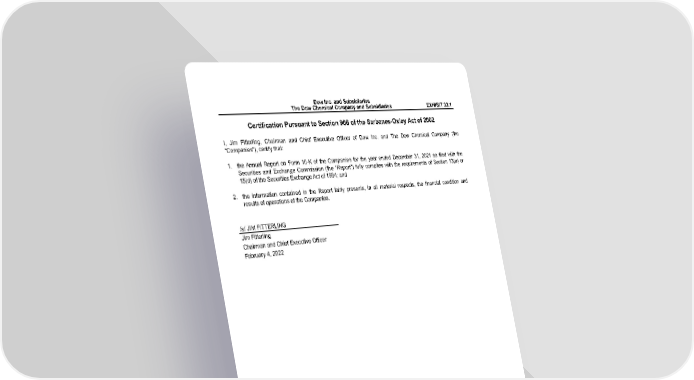 Dow Inc. and Subsidiaries The Dow Chemical Company and Subsidiaries EXHIBIT 32.1 Certification Pursuant to Section 906 of the Sarbanes-Oxley Act of 2002 I, Jim Fitterling, Chairman and Chief Executive Officer of Dow Inc. and The Dow Chemical Company (the “Companies”), certify that: 1. the Annual Report on Form 10-K of the Companies for the year ended December 31, 2021 as filed with the Securities and Exchange Commission (the “Report”) fully complies with the requirements of Section 13(a) or 15(d) of the Securities Exchange Act of 1934; and 2. the information contained in the Report fairly presents, in all material respects, the financial condition and results of operations of the Companies. /s/ JIM FITTERLING Jim Fitterling Chairman and Chief Executive Officer February 4, 2022 172