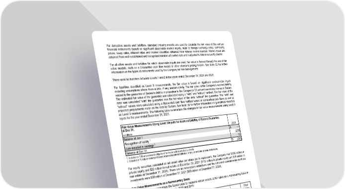 For derivative assets and liabilities, standard industry models are used to calculate the fair value of the various financial instruments based on significant observable market inputs, such as foreign exchange rates, commodity prices, swap rates, interest rates and implied volatilities obtained from various market sources. Market inputs are obtained from well-established and recognized vendors of market data and subjected to tolerance/quality checks. For all other assets and liabilities for which observable inputs are used, fair value is derived through the use of fair value models, such as a discounted cash flow model or other standard pricing models. See Note 22 for further information on the types of instruments used by the Company for risk management. There were no transfers between Levels 1 and 2 in the years ended December 31, 2021 and 2020 . For liabilities classified as Level 3 measurements, the fair value is based on significant unobservable inputs including assumptions where there is little, if any, market activity. The fair value of the Company’s accrued liability related to the guarantee of Sadara's debt is in proportion to the Company's 35 percent ownership interest in Sadara. The estimated fair value of the guarantee was calculated using a "with" and "without" method. The fair value of the debt was calculated "with" the guarantee less the fair value of the debt "without" the guarantee. The "with" and "without" values were calculated using a discounted cash flow method based on contractual cash flows as well as projected prepayments made on the debt by Sadara. See Note 16 for further information on guarantees classified as Level 3 measurements. The following table summarizes the changes in fair value measurements using Level 3 inputs for the year ended December 31, 20 21: Fair Value Measurements Using Level 3 Inputs for Accrued Liability of Sadara Guarantee at Dec 31, 2021 In millions Balance at Jan 1 $ — Recognition of liability 1 (235) Gain included in earnings 2 15 Balance at Dec 31 $ (220) 1. Included in " Other noncurrent obligations" in the consolidated balance sheets. 2. Included in "Equity in earnings (losses) of nonconsolidated affiliates" in the consolidated income statements. For equity securities calculated at net asset value per share (or its equivalent), the Company had $106 million in private equity and $22 million in real estate at December 31, 2021 ( $111 million in private equity and $19 million in real estate at December 31, 2020 ). There are no redemption restrictions and the unfunded commitments on these investments were $59 million at December 31, 2021 ( $63 million at December 31, 2020 ). Fair Value Measurements on a Nonrecurring Basis The following table summarizes the bases used to measure certain assets at fair value on a nonrecurring basis in the consolidated balance sheets in 2021 , 2020 and 2019 : Basis of Fair Value Measurements on a Nonrecurring Basis at Dec 31 (Level 3) Total Losses In millions 2020 Assets at fair value: Long-lived assets and other assets $ 121 $ (245) 2019 Assets at fair value: Long-lived assets, other assets and equity method investments $ 162 $ (2,031) Goodwill $ — $ (1,039) 2021 Fair Value Measurements on a Nonrecurring Basis The Company's fair value measurements on a nonrecurring basis were insignificant in 2021. 148