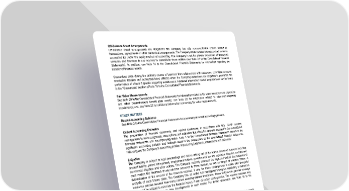 Off-Balance Sheet Arrangements Off-balance sheet arrangements are obligations the Company has with nonconsolidated entities related to transactions, agreements or other contractual arrangements. The Company holds variable interests in joint ventures accounted for under the equity method of accounting. The Company is not the primary beneficiary of these joint ventures and therefore is not required to consolidate these entities (see Note 24 to the Consolidated Financial Statements). In addition, see Note 14 to the Consolidated Financial Statements for information regarding the transfer of financial assets. Guarantees arise during the ordinary course of business from relationships with customers, committed accounts receivable facilities and nonconsolidated affiliates when the Company undertakes an obligation to guarantee the performance of others if specific triggering events occur. Additional information related to guarantees can be found in the “Guarantees” section of Note 16 to the Consolidated Financial Statements. Fair Value Measurements See Note 20 to the Consolidated Financial Statements for information related to fair value measurements of pension and other postretirement benefit plan assets; see Note 22 for information related to other-than-temporary impairments; and, see Note 23 for additional information concerning fair value measurements. OTHER MATTERS Recent Accounting Guidance See Note 2 to the Consolidated Financial Statements for a summary of recent accounting guidance. Critical Accounting Estimates The preparation of financial statements and related disclosures in accordance with U.S. GAAP requires management to make judgments, assumptions and estimates that affect the amounts reported in the consolidated financial statements and accompanying notes. Note 1 to the Consolidated Financial Statements describes the significant accounting policies and methods used in the preparation of the consolidated financial statements. Following are the Company’s accounting policies impacted by judgments, assumptions and estimates: Litigation The Company is subject to legal proceedings and claims arising out of the normal course of business including product liability, patent infringement, employment matters, governmental tax and regulation disputes, contract and commercial litigation and other actions. The Company routinely assesses the legal and factual circumstances of each matter, the likelihood of any adverse outcomes to these matters, as well as ranges of probable losses. A determination of the amount of the reserves required, if any, for these contingencies is made after thoughtful analysis of each known claim. The Company has an active risk management program consisting of numerous insurance policies secured from many carriers covering various timeframes. These policies may provide coverage that could be utilized to minimize the financial impact, if any, of certain contingencies. The required reserves may change in the future due to new developments in each matter. For further discussion, see Note 16 to the Consolidated Financial Statements. Asbestos-Related Matters of Union Carbide Corporation Union Carbide is and has been involved in a large number of asbestos-related suits filed primarily in state courts during the past four decades. These suits principally allege personal injury resulting from exposure to asbestos- containing products and frequently seek both actual and punitive damages. The alleged claims primarily relate to products that Union Carbide sold in the past, alleged exposure to asbestos-containing products located on Union Carbide’s premises, and Union Carbide’s responsibility for asbestos suits filed against a former Union Carbide subsidiary, Amchem Products, Inc. ("Amchem"). Each year, Ankura Consulting Group, LLC ("Ankura") performs a review for Union Carbide based upon historical asbestos claims, resolution and asbestos-related defense and processing costs, through the terminal year of 2049. Union Carbide compares current asbestos claim and resolution activity, including asbestos-related defense and processing costs, to the results of the most recent Ankura study at each balance sheet date to determine whether the asbestos-related liability continues to be appropriate. For additional information, see Part I, Item 3. Legal Proceedings; Asbestos-Related Matters of Union Carbide Corporation in Management’s Discussion and Analysis of Financial Condition and Results of Operations; and Notes 1 and 16 to the Consolidated Financial Statements. 57