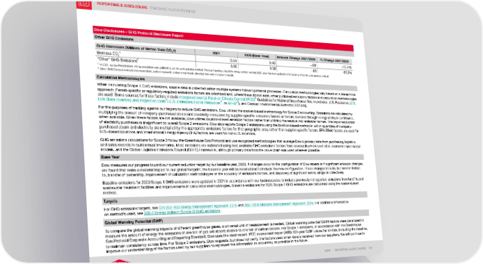 REPORTING & DISCLOSURE TRACKING OUR PROGRESS DOW | REPORTING & DISCLOSURE | 181 Dow Disclosures – GHG Protocol Disclosure Report Other GHG Emissions GHG Emissions (Millions of Metric Tons CO 2 e) 2021 2020 (Base Year) Amount Change 2021/2020 % Change 2021/2020 Biomass CO 2 1 0.54 0.45 +.08 +17.4% “Other” GHG Emissions 2 0.06 0.09 -.03 -33.3% 1 In 2021, our purchased steam energy calculation was updated to use the work potential method. Previous reporting utilized the energy content method. 2020 value has been updated in this report to reflect the work potential method. 2 Other GHG Emissions includes bromomethane, carbon monoxide, carbon tetrachloride, dimethyl ether and methylene bromide. Calculation Methodologies When calculating Scope 1 GHG emissions, source data is collected within multiple systems following internal processes. Calculation methodologies vary based on a hierarchical approach. Permit-specific or regulatory-required emissions factors are prioritized and, where these do not exist, other published emissions factors and calculation methodologies are used. Some sources for these factors include Intergovernmental Panel on Climate Control (IPCC) Guidelines for National Greenhouse Gas Inventories; U.S. Resources ( U.S. EPA State Inventory and Projection Tools ; U.S. Emissions Factor Resources , or AP-42 ); and German Environmental Authority (12/2016). For the purposes of tracking against our targets to reduce GHG emissions, Dow utilizes the market-based methodology for Scope 2 accounting. Emissions are calculated by multiplying the amount of company-purchased steam and electricity consumed by supplier-specific emissions factors or factors denoted through energy attribute certificates, when available. When these factors are not available, Dow utilizes location-based emission factors rather than utilizing the residual mix emission factors. The impacted portion of electricity purchases is insignificant to overall Scope 2 emissions. Dow also reports Scope 2 emissions using the location-based method in which quantities of company- purchased steam and electricity are multiplied by the appropriate emissions factors for that geographic area, rather than supplier-specific factors. EPA EGrid factors are used for U.S.-based locations and International Energy Agency (IEA) factors are used for non-U.S. locations. GHG emissions calculations for Scope 3 follow the Greenhouse Gas Protocol and use recognized methodologies that leverage Dow’s primary data from purchasing, logistics, and sales records to build robust inventories. Most emissions are estimated using best available GHG emissions factors from sources like Ecoinvent v3.8, economic input-output models, and the Global Logistics Emissions Council (GLEC) Framework, although primary data from the value chain was used wherever possible. Base Year Dow measures our progress toward our current reduction target by our baseline year, 2020. If changes occur in the configuration of Dow assets or if significant emission changes are found that make a material impact to our global footprint, the baseline year will be recalculated to include the new configuration. These changes include, but are not limited to, transfer of ownership, improvement of calculation methodologies or the accuracy of emissions factors, and discovery of significant errors, singly or collectively. Baseline emissions for 2020 Scope 1 GHG emissions were updated in 2021 in accordance with our business rules to include previously not reported emissions from landfills and wastewater treatment facilities and improvements in calculation methodologies. Baseline emissions for 2020 Scope 2 GHG emissions are calculated using the market-based method. Targets For GHG emissions targets, see GRI 302-103 Energy Management Approach 2016 and 305-103 Emissions Management Approach 2016 . For additional information on method’s used, see 305-2 Energy indirect (Scope 2) GHG emissions . Global Warming Potential (GWP) To compare the global warming impacts of different greenhouse gases, a universal unit of measurement is needed. Global warming potential (GWP) factors were developed to measure the amount of energy the emissions of one ton of gas will absorb relative to one ton of carbon dioxide. For Scope 1 emissions, in accordance with the Greenhouse Gas Protocol Corporate Accounting and Reporting Standard, Dow uses the most recent IPCC assessment report (AR6) 100-year GWP values for all data, including the baseline, to maintain consistency across time. For Scope 2 emissions, Dow requests, but does not verify, the factors used when data is received from our suppliers. We will continue to improve our understanding of the factors used by our suppliers to represent the information as accurately as possible in the future.