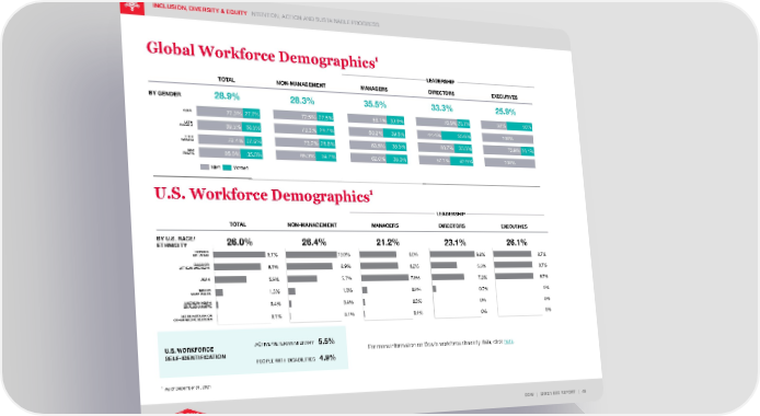 INCLUSION, DIVERSITY & EQUITY INTENTION, ACTION AND SUSTAINABLE PROGRESS DOW | 2021 ESG REPORT | 45 Global Workforce Demographics 1 U.S. Workforce Demographics 1 1 As of December 31, 2021 TOTAL NON-MANAGEMENT MANAGERS DIRECTORS EXECUTIVES LEADERSHIP EMEAI LATIN AMERICA U.S. & CANADA ASIA PACIFIC 72.3% 27.7% 69.5% 30.5% 72.4% 27.6% 65.0% 35.0% 72.5% 27.5% 70.3% 29.7% 73.2% 26.8% 65.3% 34.7% 69.1% 30.9% 39.8% 60.2% 36.5% 63.5% 38.0% 62.0% 73.9% 26.1% 50% 50% 100% 100% 76.9% 23.1% 44.4% 55.6% 66.7% 33.3% 57.1% 42.9% Men Women Under 30 30-50 Over 50 28.9% 28.3% 35.5% 33.3% 25.9% 13% 1% 0% 0% 13% 58% 67% 49% 11% 59% 29% 32% 51% 89% 29% TOTAL NON-MANAGEMENT MANAGERS DIRECTORS EXECUTIVES LEADERSHIP 10.0% 8.9% 5.7% 1.3% 0.4% 0.1% 6.0% 6.2% 7.8% 0.8% 0.3% 0.1% 9.8% 5.6% 7.0% 0.7% 0% 0% 8.7% 8.7% 8.7% 0% 0% 0% 26.4% 21.2% 23.1% 26.1% 26.0% HISPANIC OR LATINO BLACK OR AFRICAN AMERICAN ASIAN TWO OR MORE RACES AMERICAN INDIAN OR ALASKA NATIVE NATIVE HAWAIIAN OR OTHER PACIFIC ISLANDER 9.7% 8.7% 5.9% 1.3% 0.4% 0.1% BY GENDER BY U.S. RACE/ ETHNICITY ACTIVE/VETERAN MILITARY PEOPLE WITH DISABILITIES 5.5% 4.9% U.S. WORKFORCE SELF-IDENTIFICATION For more information on Dow’s workforce diversity data, click here .